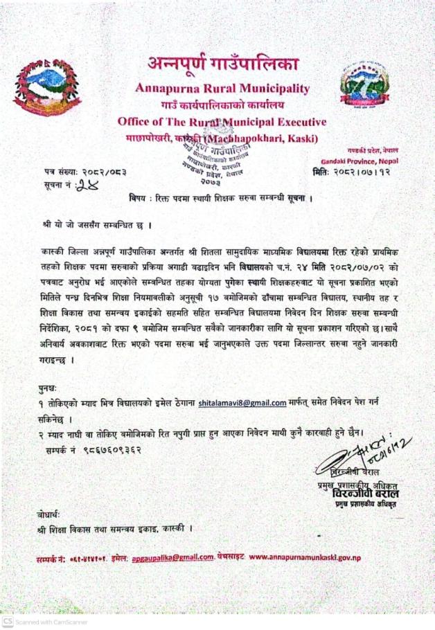 रिक्त पदमा स्थायी शिक्षक सरुवा सम्बन्धी सूचना
